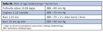 Gerður er greinarmunur á grunnendurlífgun (basic life support) sem framkvæmd er án sérhæfðs búnaðar og sérhæfðri endurlífgun (ad-vanced life support) þar sem notuð eru lyf og sérhæfður endurlífgunarbúnaður. Hér verður bæði fjallað um grunn- og sérhæfða endurlífgun miðað við þarfir heilbrigðisstarfsfólks, en áður hafa verið gefnar út leiðbeiningar um grunnendurlífgun fyrir almenning á vegum Skyndihjálparráðs Íslands (5). Einkum er stuðst við endurskoðaðar leiðbeiningar um endurlífgun á börnum sem gefnar voru út í lok síðasta árs á vegum European Resuscitation Council (6, 7) og American Heart Association (8-10). Í þeim er ráðlagt að nota endurlífgunarleiðbeiningar fyrir börn að kynþroskaaldri, eða ef viðkomandi lítur út fyrir að vera barn. Þetta er ólíkt eldri leiðbeiningum þar sem miðað var við ákveðið aldursmark. Hér eru gefnar leiðbeiningar um endurlífgun á börnum sem komin eru af nýburaskeiði (>1 mánaðar gömul).