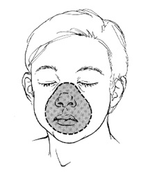 Mynd 4. Maski af réttri stærð nær frá nefrót niður að höku.