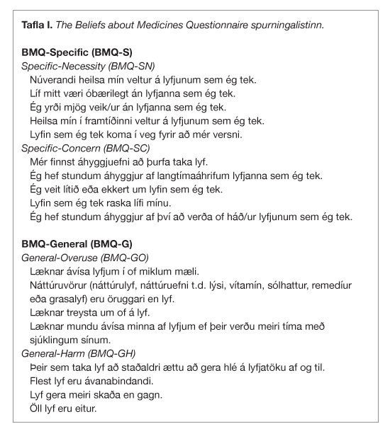 The Beliefs about Medicines Questionnaire spurningalistinn (BMQ)