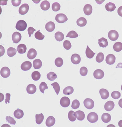 Mynd 1. Rauðblóðkornatætlur (schistocytar) við blóðrofsblóðleysi. (Mynd/ASH Image Bank)