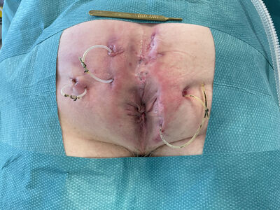Mynd 2. Lokamynd tekin 16 mánuðum eftir að meðferð hófst eða tveimur og hálfum mánuði frá síðustu aðgerð. Allir gangar hafa verið opnaðir og öll sár eru að fullu gróin.