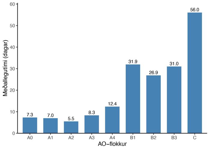 Mynd 4. Meðallegutími einstaklinga eftir AO-flokkun.