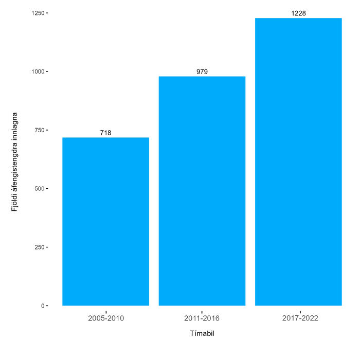 Áfengistengdum innlögnum fjölgaði um 88% á árunum 2005-2022. Algengustu sjúkdómsgreiningarnar voru geð- og atferlisraskanir og lifrar- og brissjúkdómar. Þetta hefur leitt til mikils kostnaðarauka fyrir heilbrigðiskerfið og samfélagið í heild.